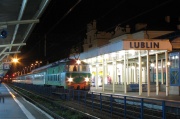 Podwójne liny nośne są też na E30. Na Nadodrzance gdy wymieniano wysięgniki teownikowe na rurowe w wielu miejscach pozostawiono stare izolatory jednokloszowe. Na zdjęciu widać wyraźnie izolatory dwukloszowe, a bystre oko dostrzeże kilometraż 24 na słupie obok znaku stop. Tak więc teoretycznie opis jest OK :) |