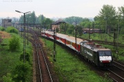 17.05.2010 Boguszów Gorce. Lokomotywa E189-459 oczekuje na wjazd do Czarnego Boru w celu załadowania pociągu kamieniem. |
