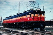 Trzy lokomotywy PA1 z pociągiem towarowym sfotografowane w Wolf Marion, OH. Lokomotywy PA1 produkowane były przez zakłady ALCO i GE (dostawca części elektrycznej) w latach 1946 - 1953. Łącznie wyprodukowano 297 lokomotyw w odmianach PA1, PB1 oraz PA2, PB2 w tym 2 lokomotywy na tor 1600mm dla kolei Brazylijskich. Lokomotywa ważyła 139 ton i rozpędzała się prawie do 190km/h, PA1 i PB1 wyposażone były w silniki ALCO 244 o mocy 2000KM, ponieważ silniki te okazały się awaryjne lokomotywy w dalszym toku produkcji wyposażano w silniki ALCO 251 o mocy 2250KM i oznaczano je jako PA2, PB2. Najwięcej tych lokomotyw eksploatowały towarzystwa Atchison, Topeka & Santa Fe Railroad, New York, New Haven i Hartford Railroad, Southern Pacific Railroad, Erie Railroad. Zasadniczo lokomotywy te przeznaczone były do obsługi pociągów pasażerskich, rzadko używane przy prowadzeniu pociągów towarowych, ich eksploatację zakończono w chwili pojawienia się nowszych i bardziej niezawodnych lokomotyw, do dziś zachowało się 5 lokomotyw PA1. Zdjęcie pochodzi z mojego zbioru, zeskanowane z kliszy. |