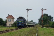 2012.07.20. Hajnówka. Duet gagarina i stoni z importowanym węglem zza wschodniej granicy mija przelotem hajnowską stację jadąc dalej do Czeremchy. Obok stoi wygaszony ST43-R014 z bruttem które niedawno przytargał ze Świsłoczy. Rumun w dalszą drogę pojedzie rankiem następnego dnia. |