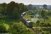 31.05.2014 Ścinawka Średnia. Parka rumunów poci się przy wyciąganiu ładownego składu wagonów 411V. Po wykonaniu tego kadru padła mi bateria w aparacie a słońce momentalnie schowało się za chmury. |