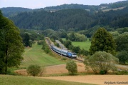 06.08.2015r.| Motorak 814 224-2 jako pociąg osobowy relacji Praha - Cercany pokonuje skalny odcinek trasy między przystankiem Petrov u Prahy oraz Luka pod Medlnikiem. W okolicy tej znajduje się sporo domków letniskowych umiejscowionych na skałach, dostać się można do nich tylko pieszo. Na widoczną po lewej skałę trwa akurat wspinaczka, a instruktor jest już na jej szczycie. |
