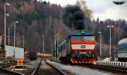 11.08.2016r.| Lokomotywa T47 005 z pociągiem osobowym relacji Nova Bystrice - Jindrichuv Hradec rusza ze stacji Strizovice po krzyżowaniu z pociągiem relacji przeciwnej prowadzonym lokomotywą T47 019. Krzyżowania pociągów osobowych na tej zagubionej w lesie, klimatycznej stacyjce odbywają się regularnie, co nie jest praktycznie spotykane na kolejach wąskotorowych w Polsce. |