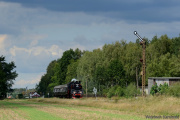 31.08.2019r. Pociąg turystyczny z Sochaczewa do Wilcz Tułowskich opuścił przed chwilą stacyjkę w Tułowicach. Po dłuższym postoju sochaczewski Px29 znowu wrócił do ruchu. Parowóz Px29 to przedwojenny protoplasta Px48, które są obecnie chyba najpopularniejszą serią parowozów na kolejach wąskotorowych. Egzemplarz ten został zbudowany w 1930 roku przez Warszawską Spółkę Akcyjną Budowy Parowozów. Na przejeździe samochód FSO Syrena model 100 z 1960 roku, którego całkowita odbudowa trwająca 4 lata zakończyła się dosłownie kilka dni temu. Warto dodać, że najstarszych modeli Syren, w różnym stanie, zachowało się prawdopodobnie kilkanaście egzemplarzy. Jeżeli kogoś zainteresuje historia tego samochodu to więcej zdjęć i trochę informacji znajdzie na mojej stronie: https://www.facebook.com/syrena100/ |