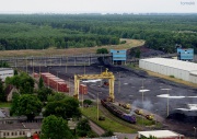 10 września 2008 r. Pociąg towarowy opuszcza Ruciane-Nidę, wyruszając wagonami naprzód do Pisza. Przybyła przed dwoma godzinami do Rucianego lokomotywa SM42-945 na dwóch platformach serii Kngs przytransportowała z Ełku szyny, które wykorzystane zostaną przy trwającym remoncie linii nr 219, w okolicy km 85. |