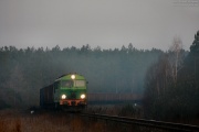 Kłobuczyn | 13.10.2009 | 16:19 | Pociąg towarowy z Głogowa do Żagania, prowadzony przez SU46-034 i wspomagany przez SU46-046 (popych), po kilkunastominutowym postoju w Kłobuczynie, kieruje się dalej w stronę Żagania z "zawrotną prędkością" 20 km/h. |