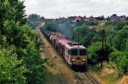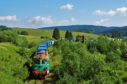 26.06.2010-Łupków.Jasielski ST43-388 wraca na czele słowackiego składu z Przełęczy Łupkowskiej.Niestety dwie bardotki 752 043-0(za rumunem) i 752 021-6(jako wątpliwy popych) miały olbrzymie problemy z przedostaniem się na naszą stronę i Słowaccy kolejarze musieli nas poprosić o pomoc. |