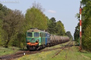 2013.04.30. ST43-R001 CTLu z składem cystern z węglowodorami nasyconymi (co zresztą nie jest zbyt odkrywcze- można poznać po wagonach) zaczyna wić się na esce, wjeżdżając z pierwszego łuku niedaleko przystanku osobowego Sycze. Pociąg jedzie ze Świsłoczy (Białoruś) do Siedlec. |