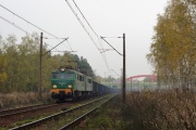 ||Pławna||. ET41-061 prowadzi ładowny skład talbotów w kierunku Stróż. 12.10.2013 |
