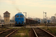 20.02.2016. Bystrzyca Kłodzka. Maszyny ECCO Rail oczekują na załadowanie składu drewnem, z którym udadzą się do Niemiec. |