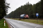 Korsze 15 kwietnia 2017r. | SM42-1279 wyjeżdża z Korsz ze składem kontenerów do Żeleznodorożnyj.Skład przyjechał w nocy z Zebrzydowic.Po lewej stronie nieczynna nastawnia wykonawcza ''KO-4'' Dawniej używana jako punkt kontrolny dla lokomotyw stacjonujących w nieistniejącej już parowozowni.W rejonie widocznym na zdjęciu (niegdyś bardzo ruchliwym) -funkcjonowały jeszcze dwie inne nastawnie. |
