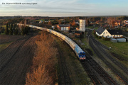 03.02.2020 || Połowa pociągu z cementem, który dotarł z Działoszyna do Lipusza, podąża do "Prefabetu" Osława Dąbrowa. Skład zbliża się do dawnej stacji Róg.