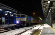 Nurek 745 046-1 mija tarczę ostrzegawczą powoli zbliżając się do Kętrzyna z okrojonym składem TLK ''Branicki'' z Warszawy Zachodniej do Gdyni głównej.W dolnym kadrze widoczna linia nr 259 Kętrzyn-Węgorzewo.Zdjęcie wykonałem w drodze do pracy. |