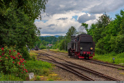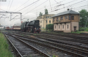 14-18.06.1995 -Właśnie mija 25 lat od pamiętnych imprez towarzyszących obchodom 150 lecia Kolei na Ziemiach Polskich. Jedną z nich był przejazd pociągu specjalnego z Warszawy do Rogowa prowadzonego parowozem Ty51-223. Pogoda była zmienna i w Rogowie wyszło słońce po ulewie która towarzyszyła na trasie przejazdu. |