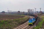18 kwietnia 2013 | W centrum kadru ST45-18 na stacji kolei piaskowej Kotlarnia oczekuje na zjechanie na widoczny z prawej strony skład pomarańczowych piaskarek na KWK Staszic. Przyprowadziła go z pola piaskowego TEM2-074, a na popychu już ustawiła się 6Dg. Liczyłem, że ST45 nieco więcej pojeżdżą z piaskiem na Staszic, ale nawet ustawienie się na ciekawej miejscówce nie pozwoliło doczekać tego pociągu nie myśląc o kolejnych. Obok TEM2-277 po przyprowadzeniu pociągu "zbiorowego" z Pyskowic. W składzie znajdowało się 13 radwanów ze składu w Pyskowicach, 4 wagony po remoncie w Przezchlebiu i 17 wagonów 401Vc z próżnego Wojciecha.
