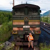 22.06.2015. Чум (Chum). 2ТЭ10МК-2496 z pociągiem towarowym do Peczory, oczekuje na zwolnienie szlaku. |