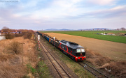 10.03.2016r | Sobótka - Rogów Sobócki | BR232-281 oraz BR232-781 Spółki Depol z Bydgoszczy prowadzą linią 285 ładowny skład z Sobótki Zachodniej do Wrocławia, pociąg zbliża się do Rogowa Sobóckiego.