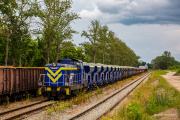 SM42-2140 pełniąca od pewnego czasu rolę "otmuchowskiego popychu" stoi wygaszona, a tuż za nią firmowa koleżanka z Omniloko - BR231-081 ze składem dumpcarów z Rybnika Towarowego, która odbyła tu kilkudniową stójkę w oczekiwaniu na załadunek w Piławie Górnej na kopalni