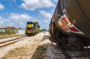 24.07.2025, Novoselë - Wlora | 770-702 prowadzi ładowny skład ropy naftowej do portu we Wlorze. Zdjęcie wykonane z długo już nie używanego wiaduktu drogowego, a po prawej stronie kadru widać powtarzający się obraz w Albanii, czyli ruiny domów.